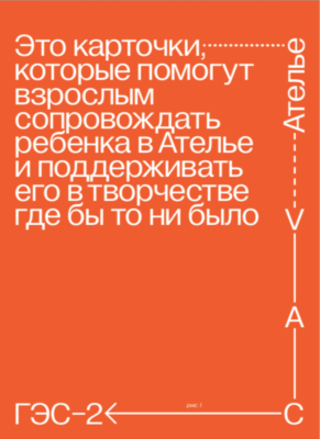 Эти карточки помогут взрослым взаимодействовать с ребенком в Ателье и в дальнейшем поддерживать его творческие начинания дома и в других местах. Каждая карточка описывает интересную ситуацию, содержит совет для взрослых и несколько вопросов и фраз для ребенка, которые помогут выстроить творческий диалог.