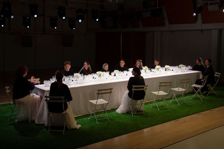 За свадебным столом в «МУМУ. Действие четвертое. Дүртенче акт», спектакле, вновь созданном сообществом глухих, встретились жители Москвы и Казани, чтобы обсудить, чем отличаются друг от друга разные культуры.