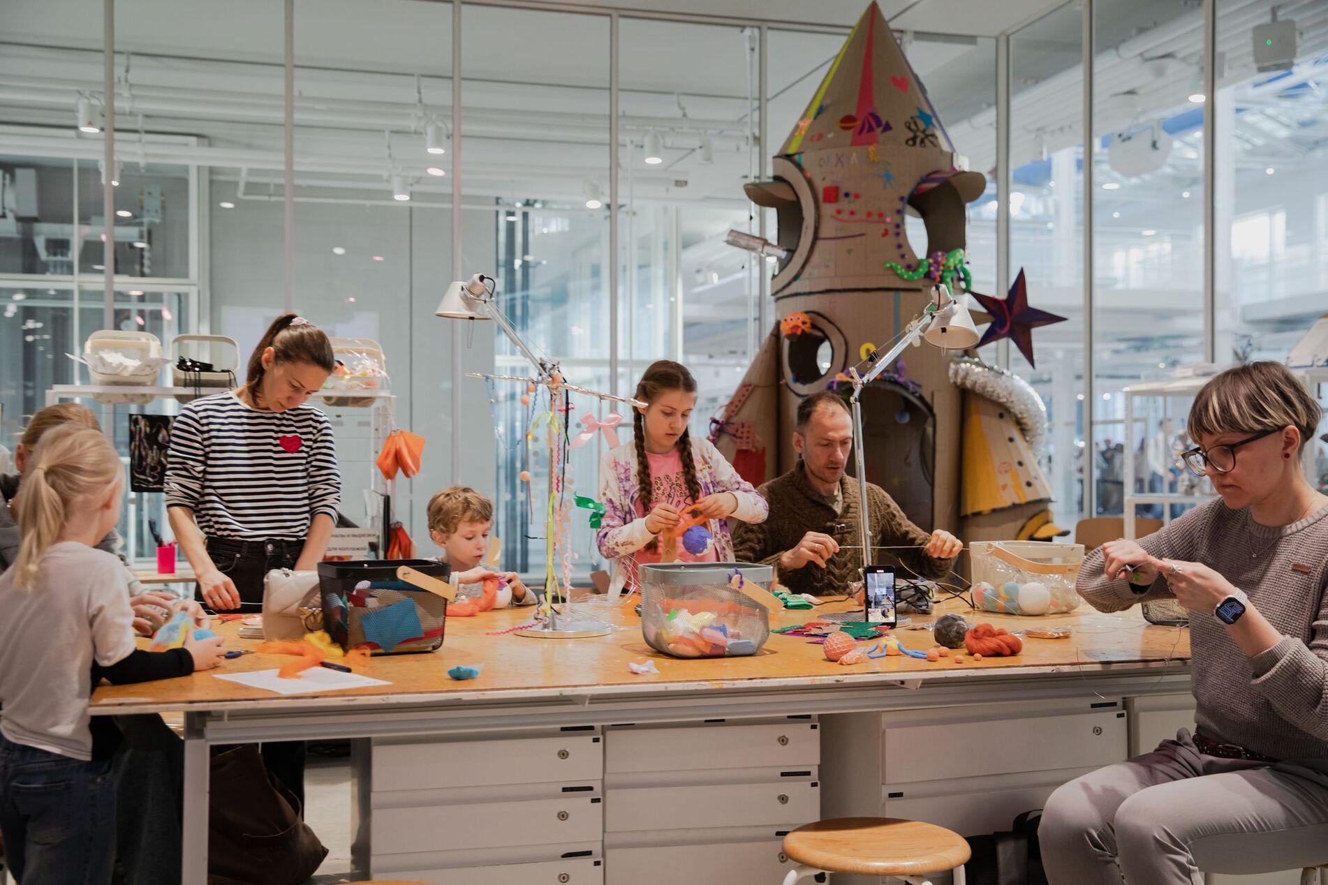 Строим ракету! А еще говорим об истории освоения космоса: узнаем про первые космические корабли, межпланетные автоматические станции, орбитальные станции и высадки людей на Луну. Подумаем, каким бы мы хотели видеть космический корабль будущего.