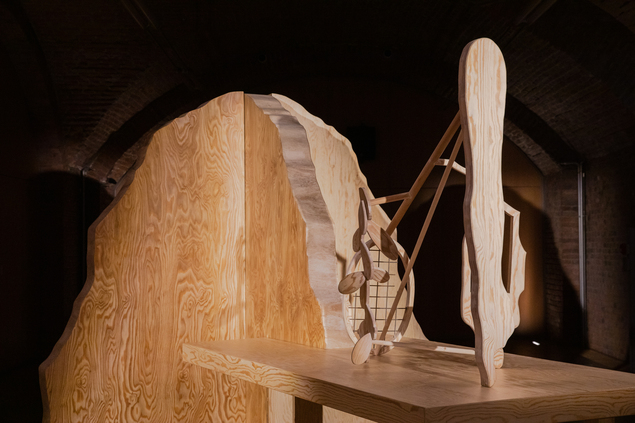 Эта скульптурная инсталляция символизирует взаимодействие между творением человеческих рук и растворяющимися формами времени. Скульптура предстает свидетелем географических и социокультурных дистанций и внутренней памяти, заключенной во фрагментах пейзажа. Тающая гора противопоставлена твердеющей равнине. На фоне обостряющихся экологических проблем ее осязаемая текстура прокладывает путь через бесплодные ландшафты — сквозь смотрящие на человечество глаза, сквозь прочные подавляющие структуры, сквозь загадку и тайну рук, держащих вымысел и веру, — на фоне сужающихся границ предсказуемых забот.