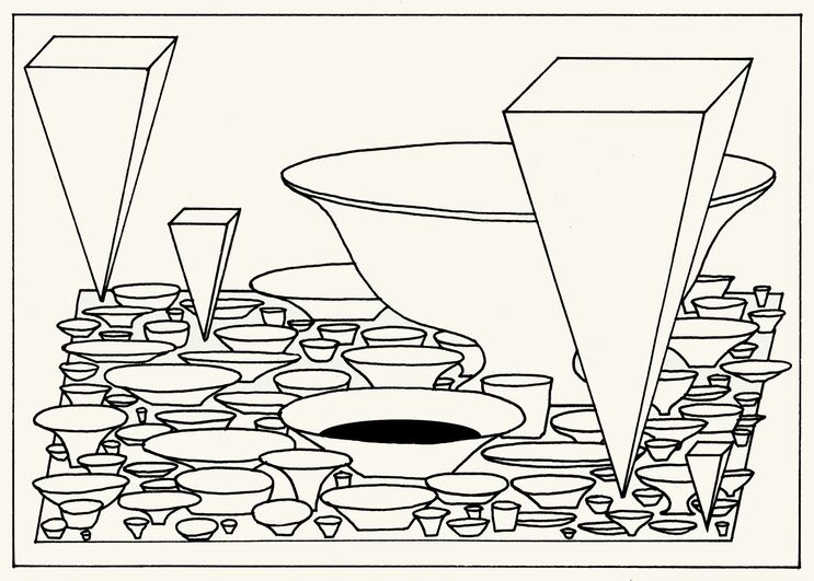 Гастрономические размышления о пространстве отношений мы бы начали с малой формы, плоского объекта размером с ладонь — тренчера (от старофранцузского слова trancher — «резать»), прародителя современной тарелки. В Средние века индивидуальная посуда была роскошью, в основном ели из общих блюд, и тренчер был ломтем черствого хлеба, куда накладывали пищу. Ели часто вдвоем, по очереди, пока хлеб и все, что на нем, не исчезали. Аристократы могли позволить себе есть в одиночку, а остатки пропитанного соусом плоского сухаря они передавали слугам или беднякам. Именно в ту эпоху закрепляется идея еды как индивидуального опыта, и тарелка становится точкой отсчета.
