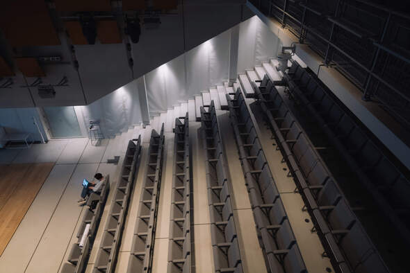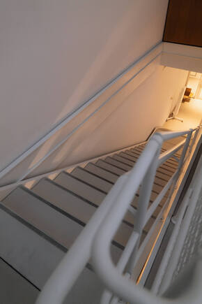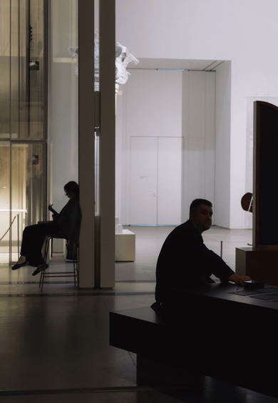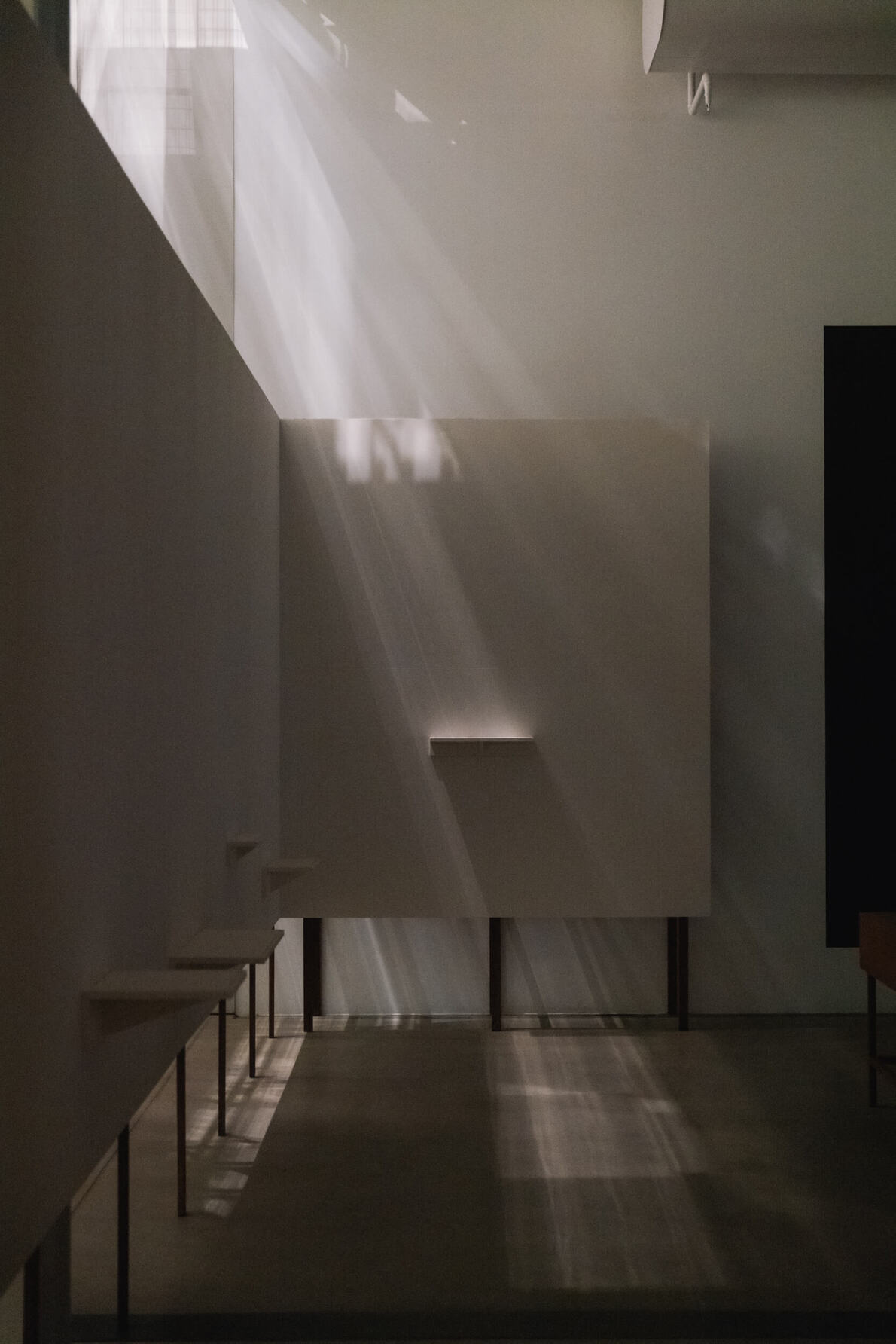Здесь на фоне белого скелета архитектуры особенно ярко проступает жизнь. На первый взгляд кажется, что форма и пространство четко определяют, что тут может и не может происходить, и в моменте я ощутила тревогу от того, что снимаю некий набор заранее срежиссированных сценариев, которые диктуют здание, мебель, маршруты. Тем более я в этом месте не в первый раз и было страшно не увидеть нового.