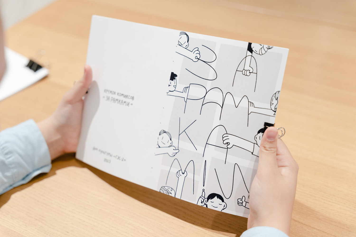 Комикс — динамичный жанр современного искусства, развившийся вне академических рамок. Среди комиксистов есть профессионалы и самоучки. Кто-то начинает с копирования любимых образов и постепенно находит свою манеру, а кто-то вырабатывает стиль с чистого листа. Одни отталкиваются от визуальных образов, другие от истории. Некоторые вначале пишут сценарий и делают подробную раскадровку, иные сразу рисуют начисто. В общем, комикс — очень индивидуальный способ самовыражения, и результат зависит в первую очередь от личности автора. Особенность кружка «За рамками» именно в том, что в разных сезонах его ведут разные художники, делятся своими находками и приемами. Поэтому у каждого сезона своя тема и свой фокус внимания, близкий и интересный ведущему. Сезон длится два с половиной месяца. Участники встречаются раз в неделю, выполняют упражнения для тренировки воображения, придумывают сюжеты и работают над коллективными и личными проектами. И, конечно, общаются друг с другом и находят единомышленников, с которыми можно обсудить последние прочитанные комиксы и поделиться своими скетчами.