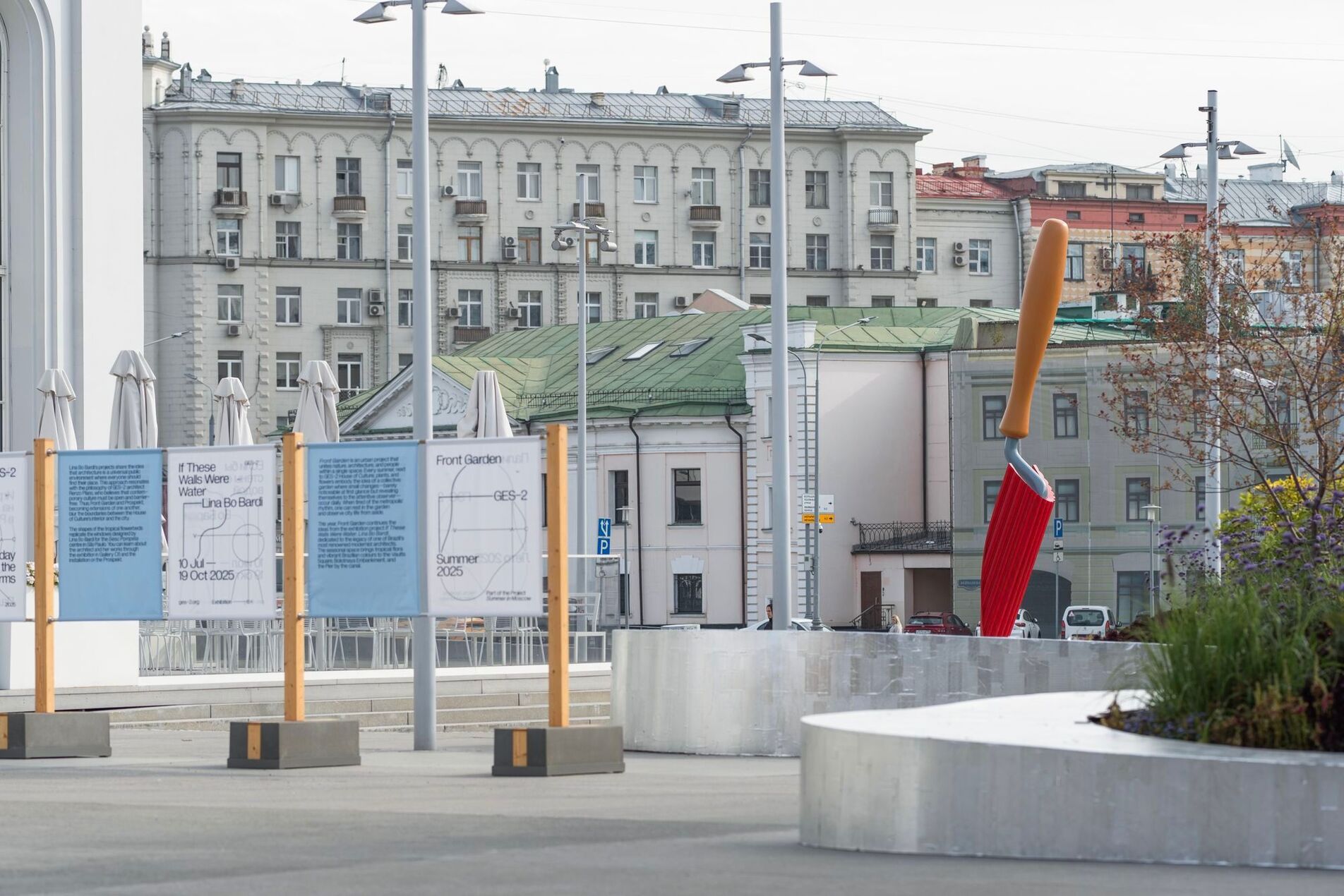 «Садовая лопатка» (2001) — это скульптура в виде всем знакомого, но во много раз увеличенного садового инструмента на спуске к Водоотводному каналу. Ее авторы — классики поп-арта, художники Клас Олденбург и Кошье ван Брюгген. Впервые «Садовая лопатка» выставлялась на крыше нью-йоркского Метрополитен-музея в 2002 году, а осенью 2025 года заняла место «Большой глины № 4» Урса Фишера.