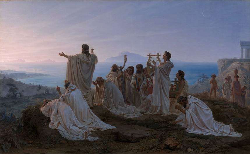 Федор Бронников. Гимн пифагорейцев восходящему солнцу, 1869. Картина неоднократно повторялась художником. Государственная Третьяковская галерея. Из собрания Павла Третьякова