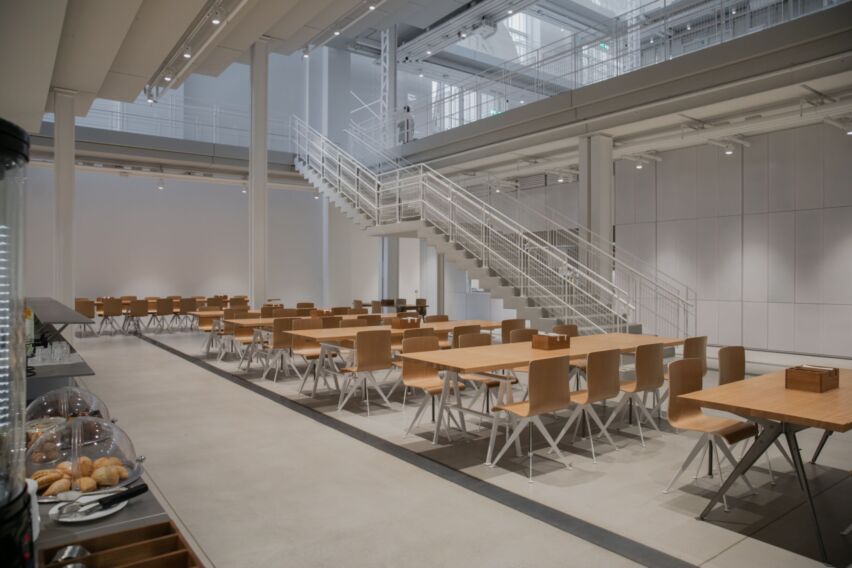 Столовая открыта для всех посетителей «ГЭС-2». Меню обновляется каждый день и состоит из нескольких комплексных обедов, напитков и десертов.