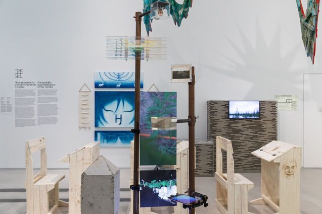 Ганна Зубкова в диалоге с Валентиной Паламарчук. Твердь посреди, 2024–2025. Экспозиция выставки «Ямальский хронотоп». Москва, 2025. Фото: Вадим Штэйн
