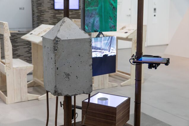 Список книг к проекту «Твердь посреди» возник одновременно как точка входа в исследование и как одна из форм его связи с местом. Сейчас скульптура участвует в выставке, однако впервые работа была показана в Национальной библиотеке Ямала, и каждый из элементов Тверди был индексирован и связан с конкретными книгами в ее коллекции.