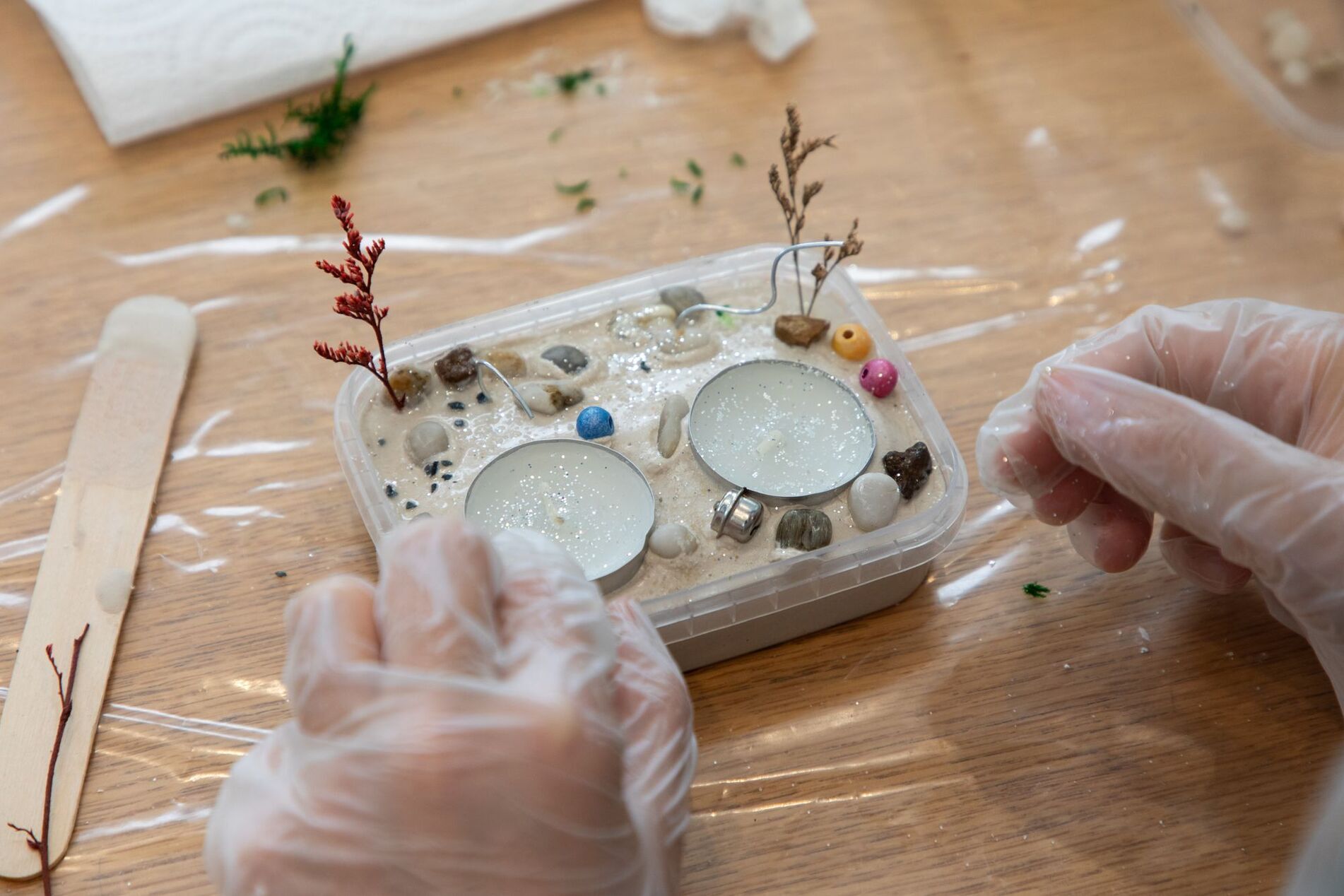Будем создавать гипсовые прямоугольные «острова» и добавлять к ним мох, воск и другие природные материалы. Что получится в результате — подсвечник, настольный сад камней или кашпо для цветов, — решать вам!