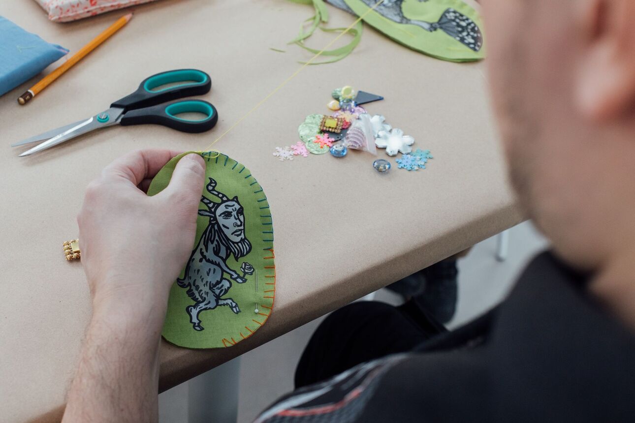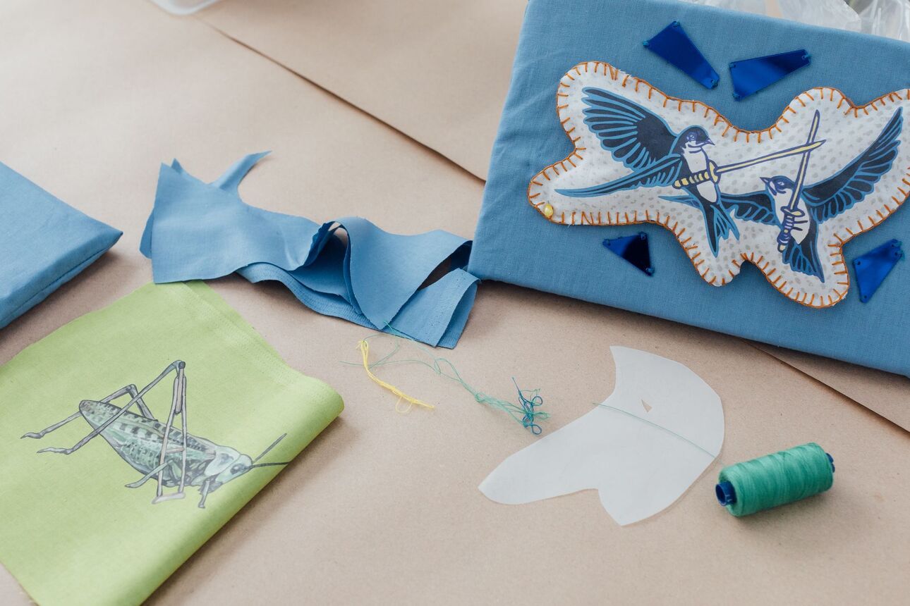 Художница Людмила Баронина, участница выставки «Нетемные века: новеллы о Средневековье и академизмах», предлагает вернуть этой идее материальную форму — попробовать буквально сшить разрозненные впечатления в единую ткань. Посетители воркшопа получат заготовки с фрагментами работ Людмилы. С помощью термотрансферной бумаги они перенесут изображения на ткань, затем сошьют из нее подушечки, украсят их пайетками и другими декоративными элементами и закрепят на картонной основе. В результате получатся настенные панно.