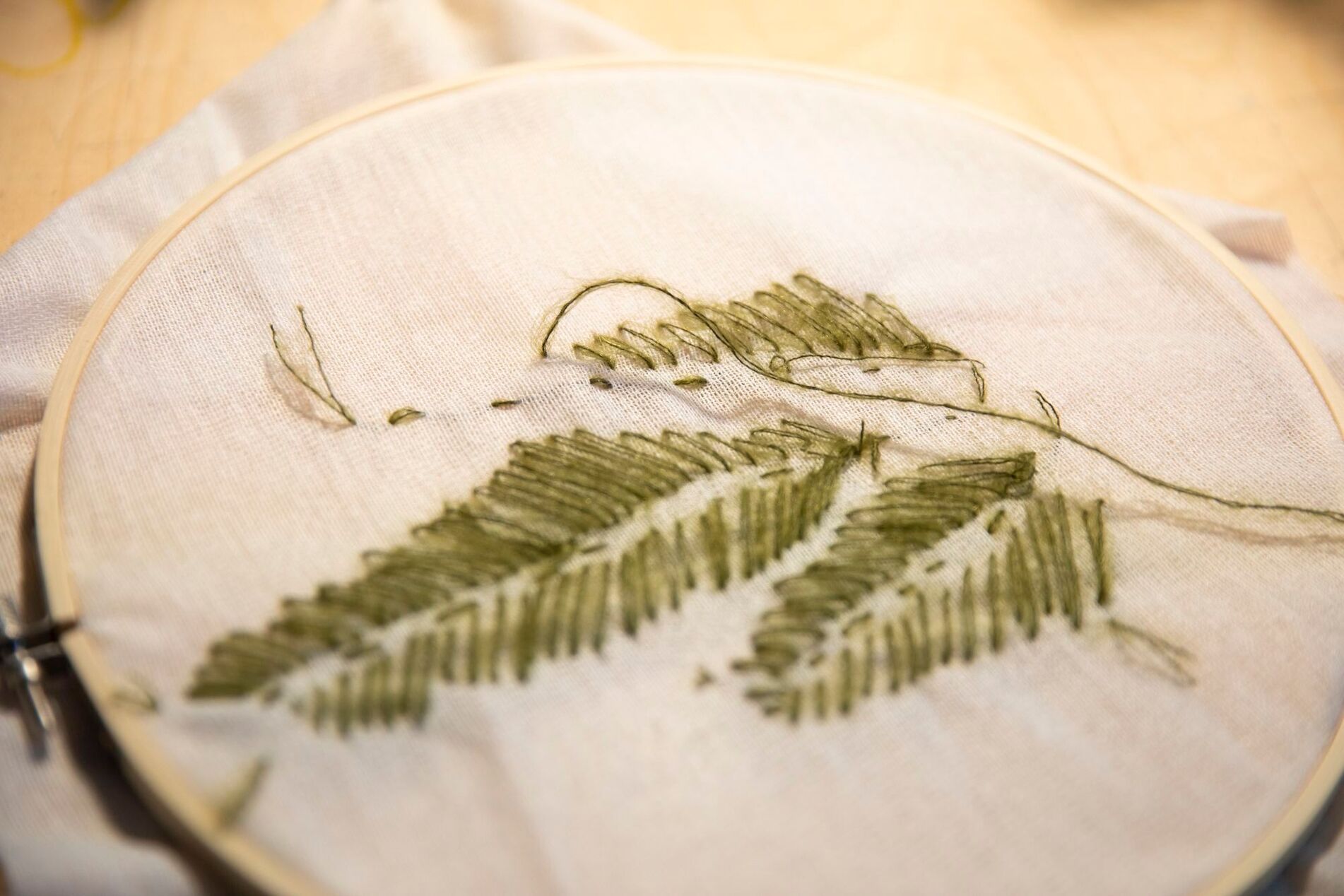 Прошивая ткань по световому отпечатку окружения, я изучаю связь между видимым и невидимым. Для меня эта практика — как рисунок с натуры: нить постепенно обозначает подсвеченные предметы из окружения, мелькая сквозь ткань. Это способ фиксировать реальность, похожий на фотографию, но очень условный, тактильный и медленный.