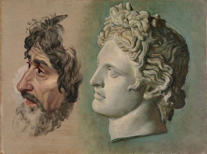 Александр Иванов. Голова Аполлона Бельведерского и мужская голова с седой бородой, в повороте головы дрожащего, надевающего рубашку, 2-я половина 1840-х. Государственная Третьковская Галерея