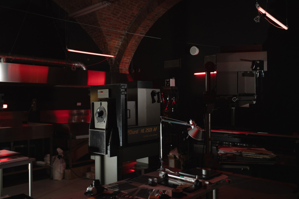 Особое внимание в нашей фотолаборатории мы уделяем ручной аналоговой фотопечати, как черно-белой, так и цветной (C-print), в крупных форматах (шириной до 182 мм). Пользователям доступны и альтернативные технологии — цианотипия, фотограмма, амбротипия и другие. Для цифровой широкоформатной печати предназначен струйный принтер Canon. Система проверочного света помогает добиться самых точных результатов цветопередачи. Мастерская оснащена всем необходимым для проявки фотопленок любого формата, сканирования и цифровой обработки файлов.