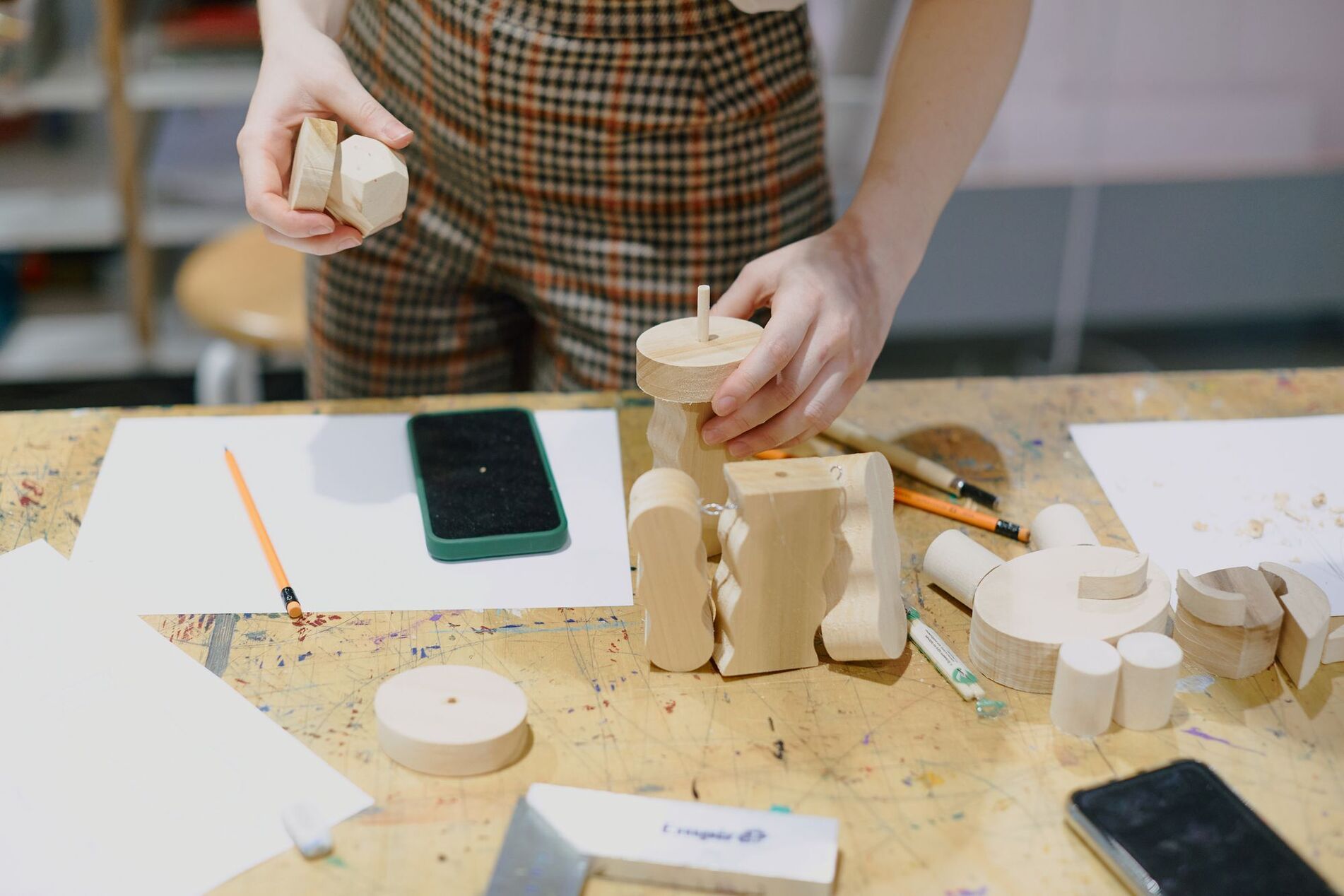 Мы предлагаем придумать персонажа, найти его образ в простых геометрических формах и поразмышлять, зачем нам герои, как они рождаются и как живут. Будем пилить, шлифовать, красить, соединять детали, оживлять своих героев и сочинять для них истории.